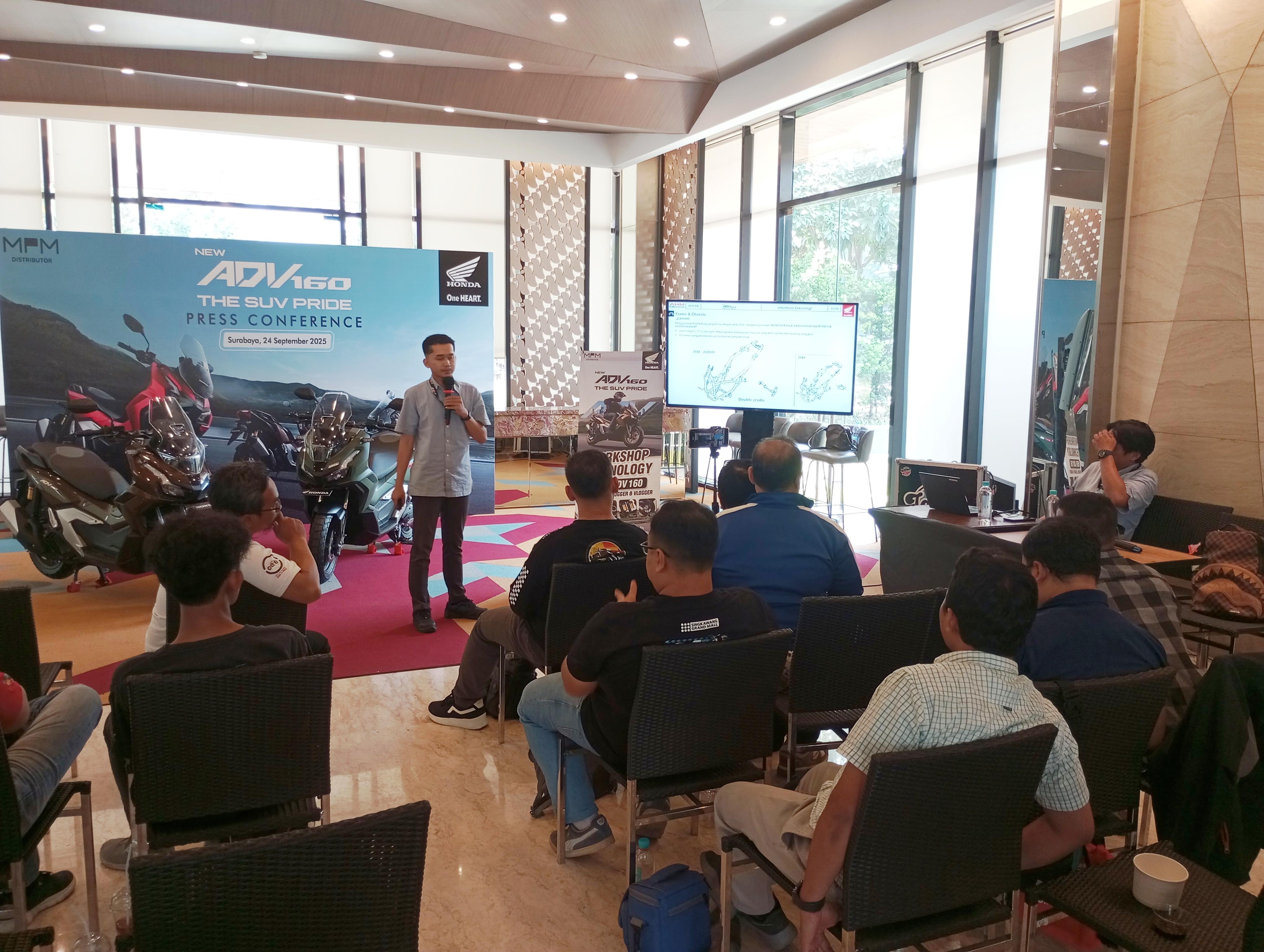 Untuk memberikan pengalaman lebih dekat, MPM Honda Jatim mengadakan workshop teknologi ADV160. Dalam acara ini membahas detail mesin, fitur HSTC, panel TFT, hingga konektivitas Honda RoadSync.