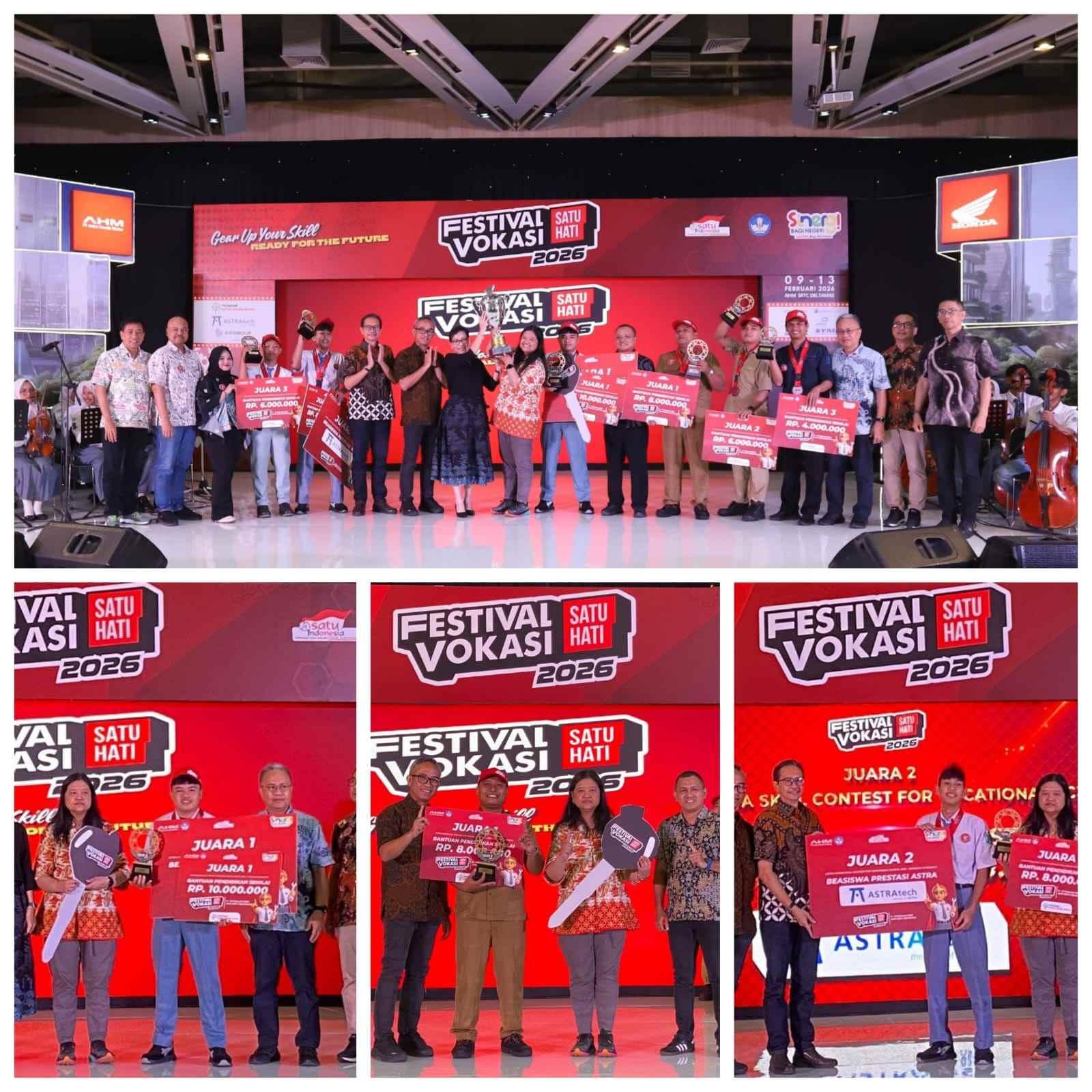 Sejumlah gelar juara nasional dalam ajang Festival Vokasi Satu Hati 2026 yang diselenggarakan oleh PT Astra Honda Motor bersama jaringan Main Dealer Honda seluruh Indonesia didapat perwakilan MPM Honda Jatim